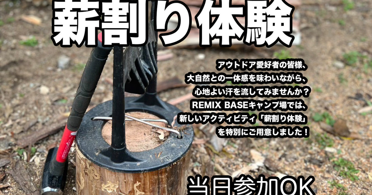 アウトドア愛好家の皆様に向け 大自然との一体感を味わいながら、心地よい汗を流してみませんか?REMIX BASEキャンプ場では、新しいアクティビティ「薪割り体験」を特別にご用意しました! 7kgの薪の材料をご自身で割っっ […]